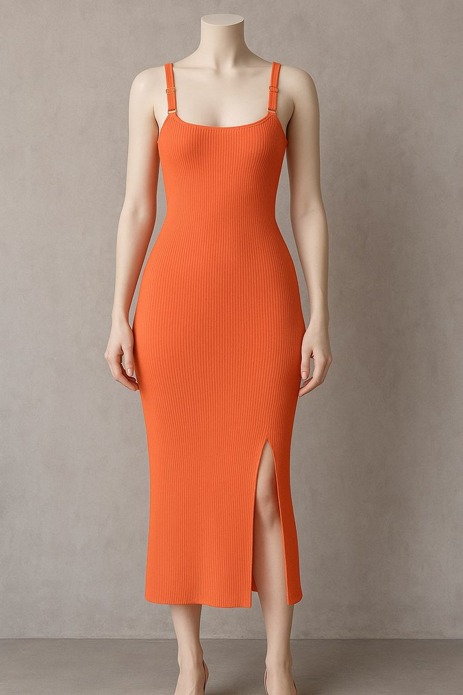 sıfır ürün yazlık uzun yırtmaçlı triko elbise