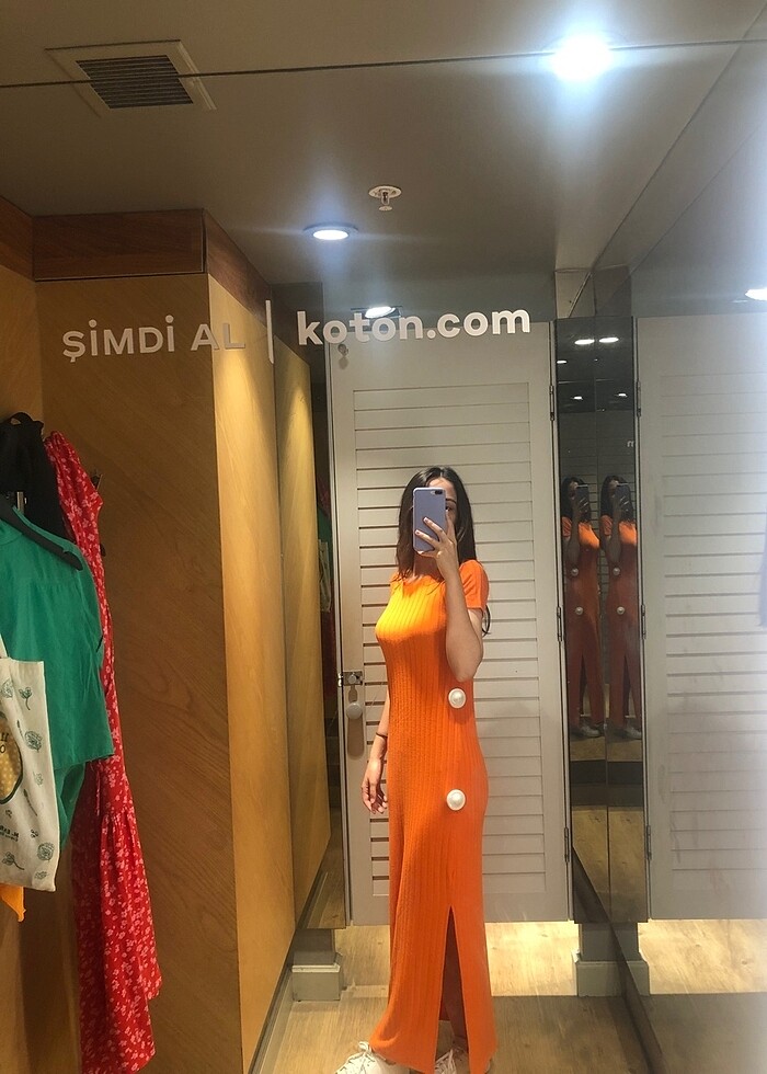 Turuncu triko elbise