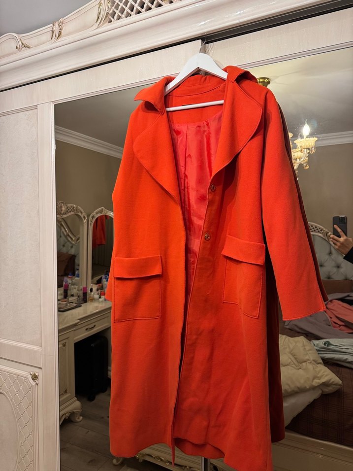 Turuncu Uzun Düğmeli Kadın Palto