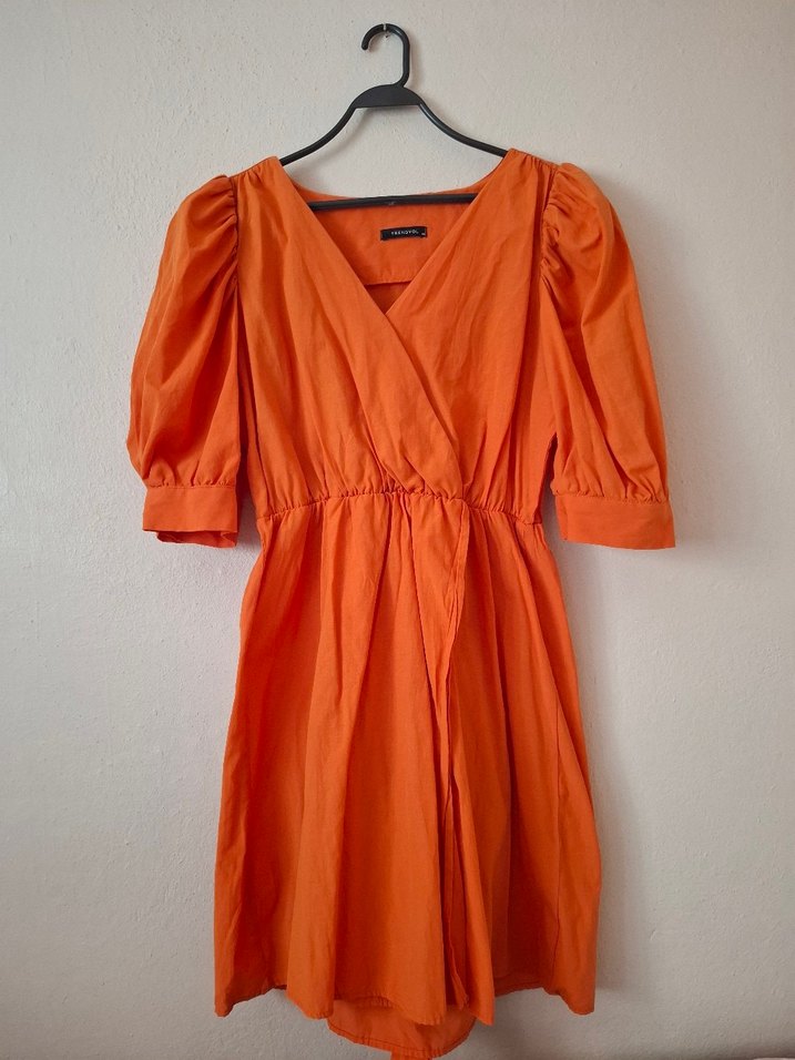 Turuncu renkte, V yaka ve bol kesimli midi elbise. Keten kumaştan ve tok dokusu ile bohem tarzını yansıtır. Kolları balon koldur. Şık davet ve etkinlikler içindir. Günlük de kullanılabilir. Yeni hiç kullanmadığım elbisedir. hiçbir kusuru yoktur. Temiz ve hijyeniktir.