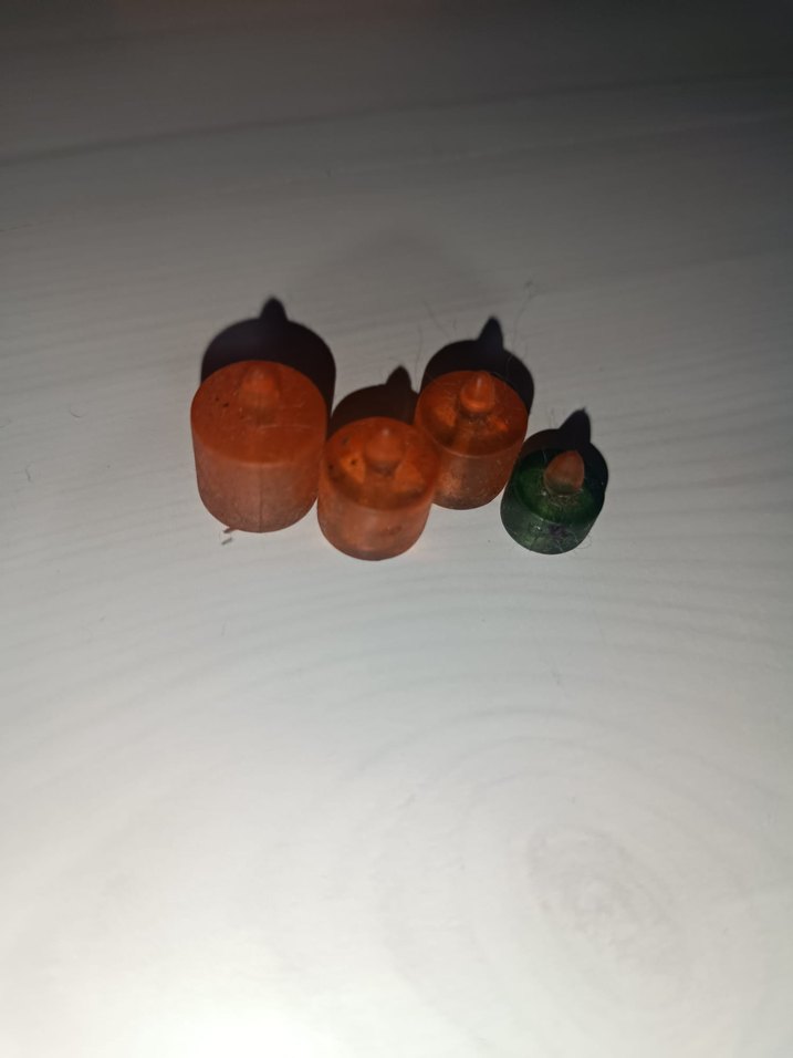 Turuncu ve yeşil renkte, küçük boy mumlardan oluşan dekoratif bir mum seti. ️