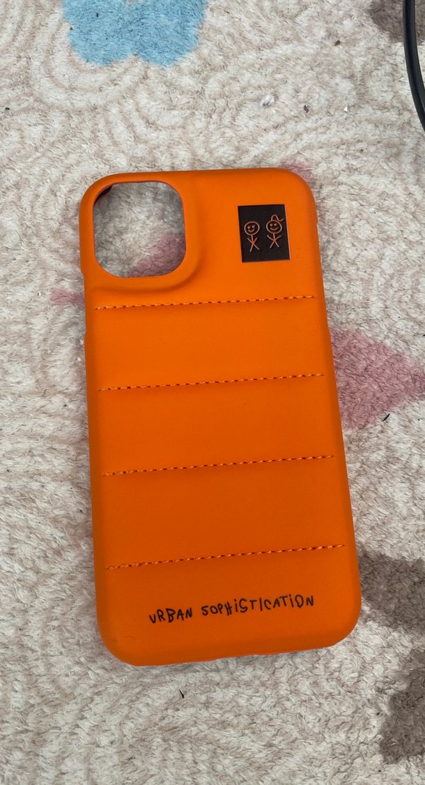 Turuncu renkte, velcro detaylı bu telefon kılıfı üzerinde 'Urban Sophistication' yazısı ve küçük bir grafik bulunuyor. Apple 11