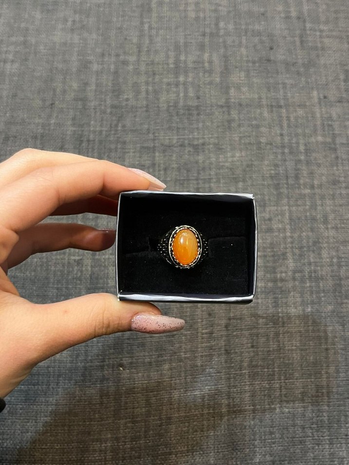 Bu kadin yüzüğü, koyu turuncu taş ve vintage bohem tarzıyla eşsiz, zamansız bir görünüm sunar. GÜMÜŞ