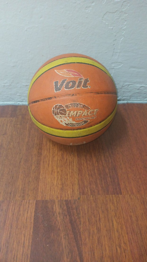 Volt logosu ve canlı turuncu-sarı renklerle baskılı desen içeren renkli basketbol topu, dayanıklı kauçuk malzemeden üretilmiştir. pazarlık vardır
