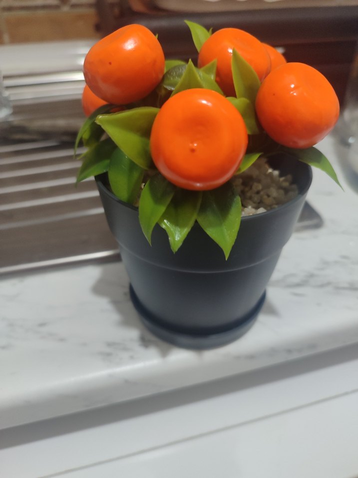 Turuncu Yapay Meyveli Dekoratif Saksı