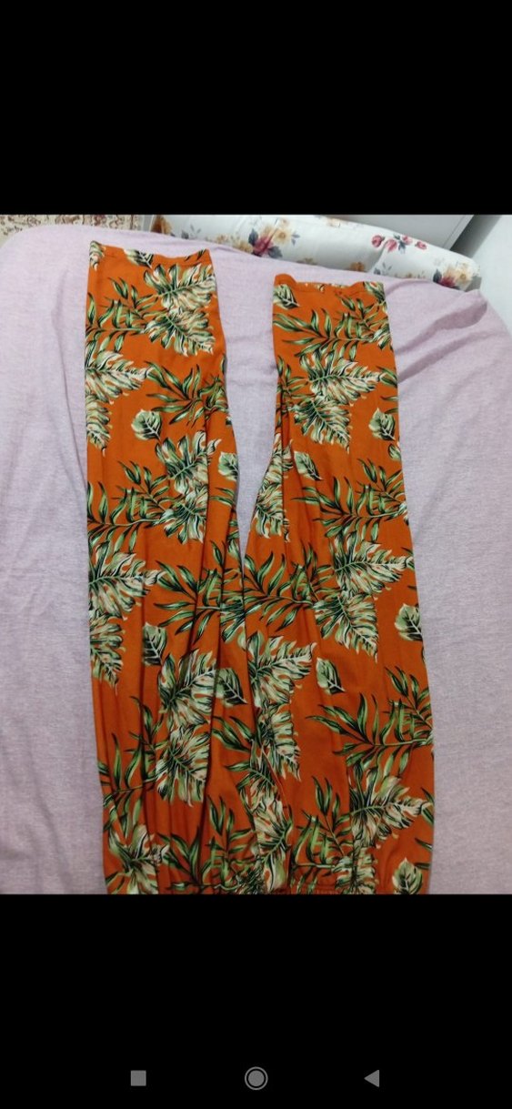 Turuncu Yaprak Desenli Bol Kesim Kadın Pantolon