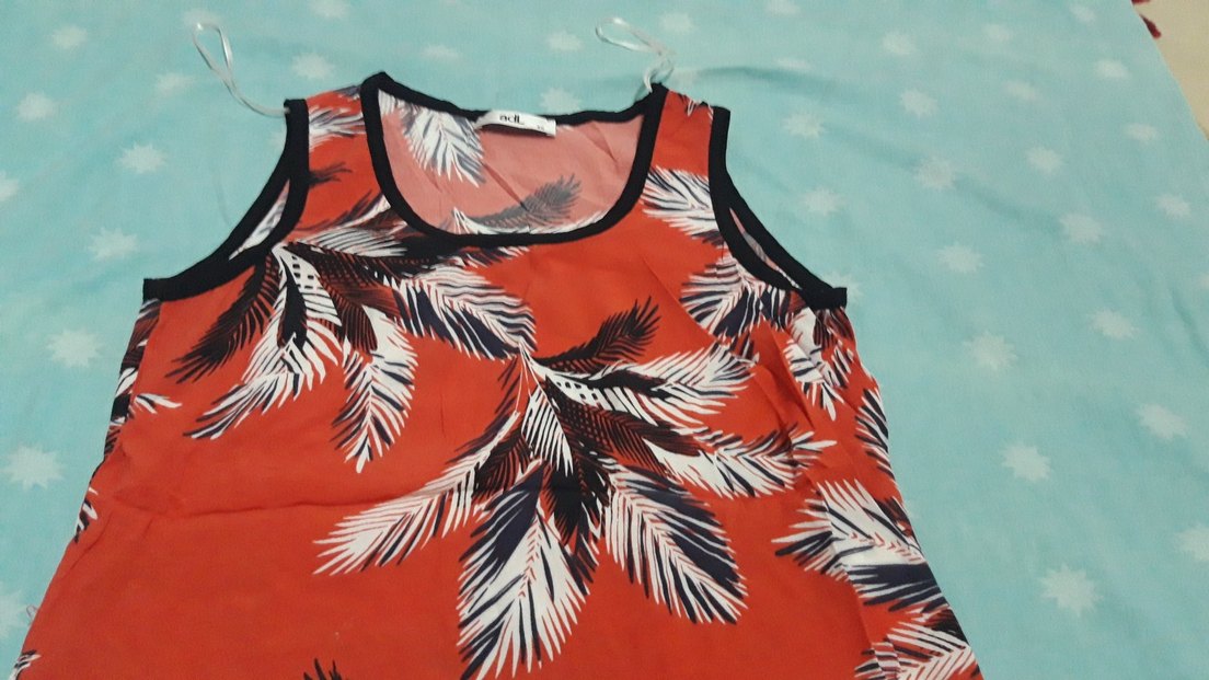 Turuncu Yaprak Desenli Kolsuz Mini Bluz