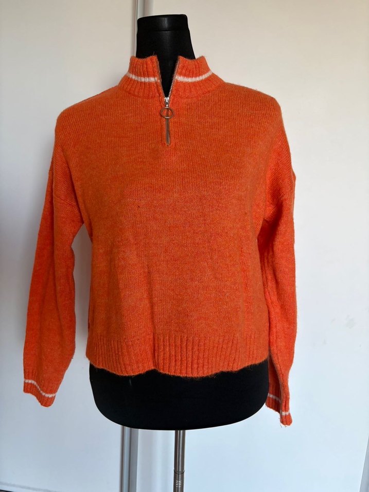 Boy 52 cm, iki koltuk arası ölçümü 51 cm. Temiz ve dikkatli kullanılmıştır, hatta kilo aldığım için pek giyme fırsatım olmadı çünkü boy olarak bi tık kısa bir kazak göbek çıkınca hoş durmuyor