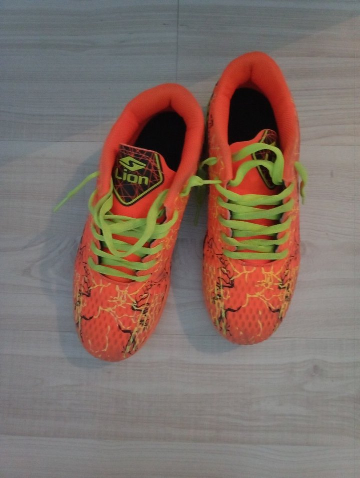 Turuncu renkli yılan desenli, bağcıklı erkek futbol ayakkabısı. Kauçuk malzemeden üretilmiş, spor ve sokak stili için uygundur. ⚽️ hiçbir sorunu kusuru yoktur tertemiz yepyeni sadece bir kez giydi futbolu sevmiyor oğlum