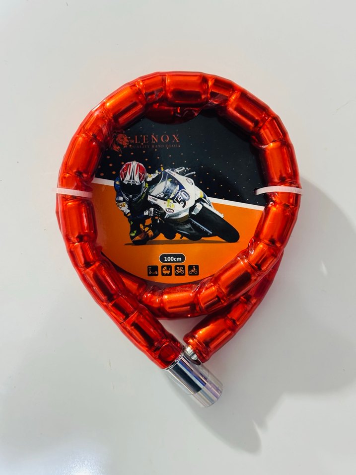100cm uzunluğunda, turuncu yılan desenli metal zincir kilit, sokak stili ve biker tarzına uygun.