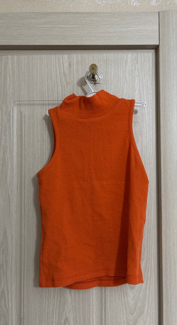 Turuncu Yüksek Yakalı Kolsuz Kadın Süveter