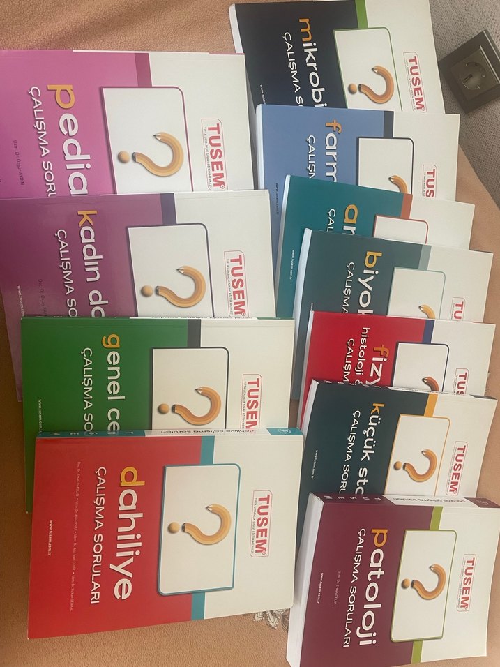 Tusem çalışma soruları Patoloji, mikrobiyoloji, pediatri, dahiliye, fizyoloji, kadın doğum, farmakoloji, biyokimya ve genel cerrahi çalışma soruları içeren tıp kitapları seti. Hiç kullanılmamıştır Adet fiyatıdır Tertemizdir, içinde çizik karalama vs yok Toplu alımda indirim yapılacaktır iletişime geçinin 2019 basım
