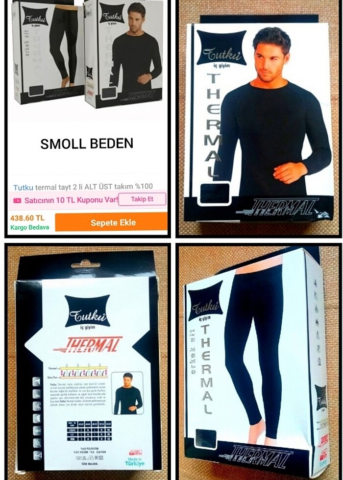 TUTKU ERKEK ALT ÜST SMOLL BEDEN TERMAL İÇLİK. MOTOR, YÜRÜYÜŞ, KAMP, VS. VS. İÇLİK. ALICISINA ŞİMDİDEN HAYIRLI OLSUN