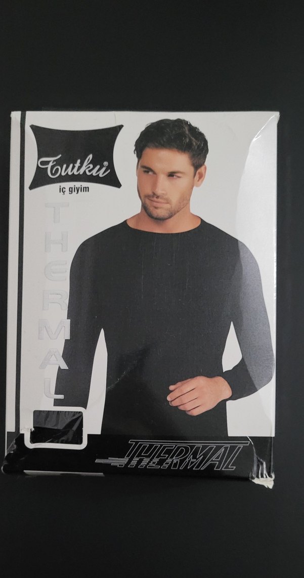 Tutku markasının siyah renkli erkek termal atleti, vücuda oturan kesimi ve normal boyuyla athleisure tarzına uygun, düz ve koyu renktedir. ❄️