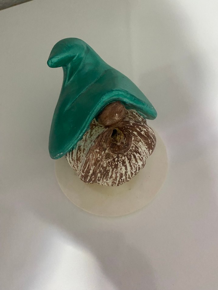 Koyu turkuaz şapkalı ve dokulu tabanlı figürin, dekorasyona farklı bir hava katar.