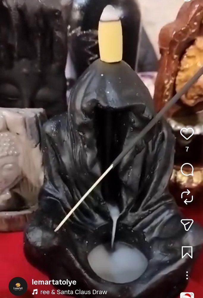 Mumluk vr tütsülük. Tütsü dumanını özel bir şekilde aşağıya yönlendiren geri akış tütsülük olarak kullanılır. Üstte tütsü çubuğu için küçük bir yer bulunur ve hem geri akış hem çubuk tütsülük birde mumluk olarak çok amaçlı kullanılır.