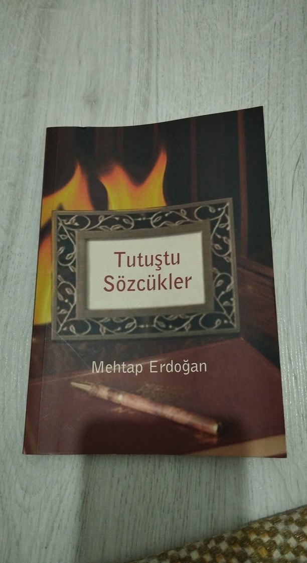 Mehtap Erdoğan'ın "Tutuştu Sözcükler" adlı romanı, sözcüklerin gücünü anlatıyor. Kapakta başlık ve kalem ile sıcak bir şömine yer alıyor.
