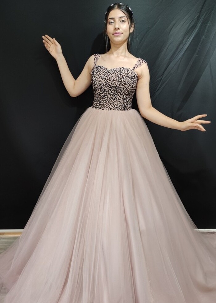 Nişan ve kına için uygun siyah kristal taş işleme pudra rengi A kesim helen 1 kez giyildi deforme yok arka ipli 36 38 40 bedene uygun