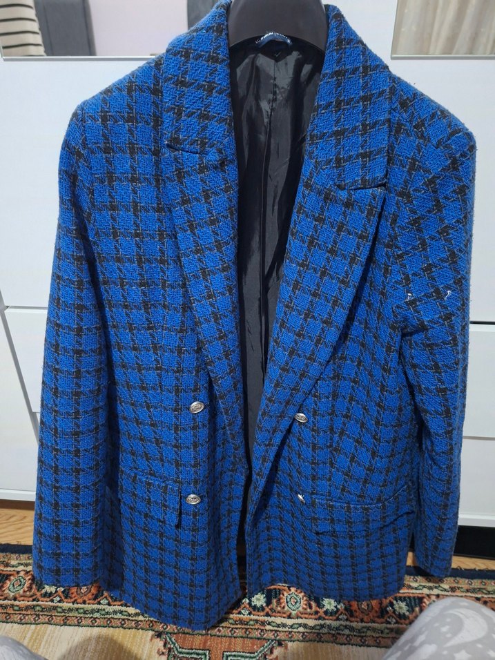 Saks mavisi siyah renklerde Kış ve sonbahar için kullanıma uygun. Hem şık hem günlük kombinlenebilir blazer ceket