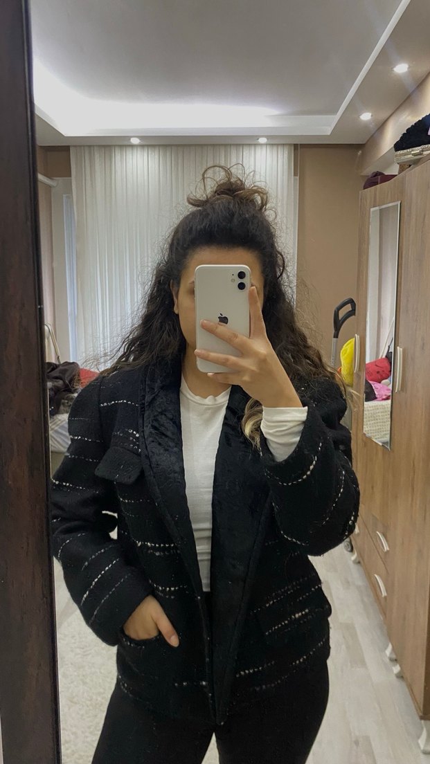 Siyah yün tüvit ceket 1-2 kere giydim defosuz