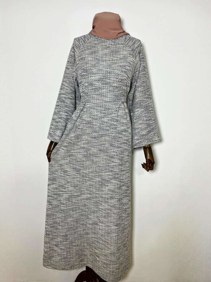 Tüvit Elbise 1 beden | 36–38–40 bedenlerle uyumlu Gri renkli, yüksek yakalı ve örgü detaylı sentetik kumaştan yapılmış uzun kollu kadın elbisesi. Rahat kalıp ve sade tasarımıyla günlük kullanıma uygundur.