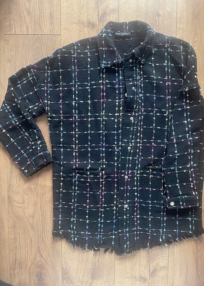 Quzu marka siyah renk zemin üzerine renki iplik işlemeli tüvit kumaşta hırka&ceket. Yırtığı söküğü yoktur.