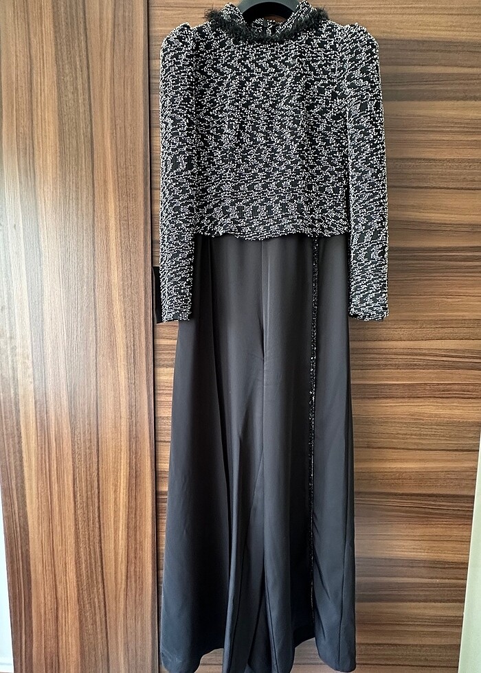 Sadece 1 kere giydim, özel tasarım bir butikten almıştım. Basenli olan tesettürlü kadınlar için takıp çıkabilen bir arka örtüsü var. Aşırı şık asil bir tulum. Kusursuzdur