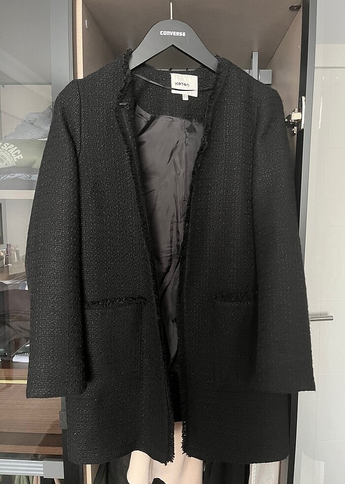 Birkaç kez giyilmiştir sorunu yoktur ceplidir 34 beden yazıyor ama 36 38 bedene de oluyor kalıbı dar değil. Boyun kısmında klipsi var. #tüvittunik #tüvitceket #tüvituzunceket