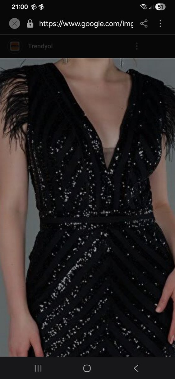 Siyah, v yaka, kolsuz, tüy detaylı ve işlemeli uzun abiye elbise, dar kesimiyle göz alıcı bir parti tarzı sunar. koltuk boyu elbise alındığinda sıkıyordu omuzdan tül ve tüy eklenerek genişletidi 36-38 beden uyumlu çok rahat bir abiye
