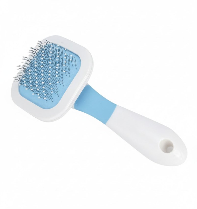 Pastel mavi ve beyaz renkte, tüyleri taramak ve dökülen tüyleri almak için ince metal kıllara sahiptir. Kedi ve köpekler için uygundur.