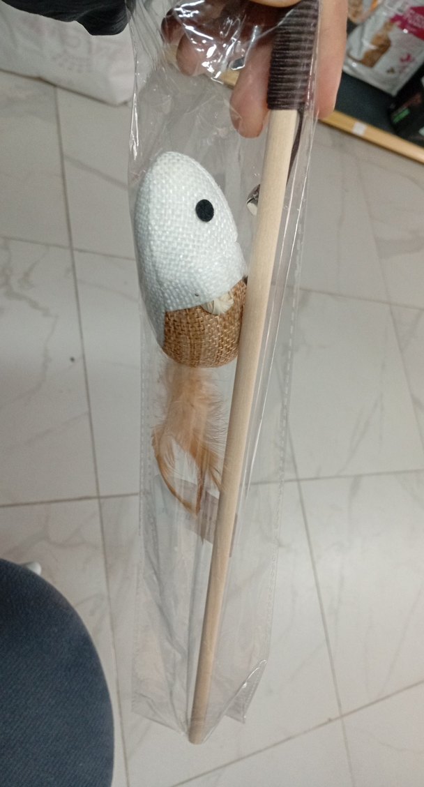 Tüy detaylı beyaz kedi oltası oyuncağı, çubuklu ve kedinizin ilgisini çekecek şekilde tasarlanmıştır.