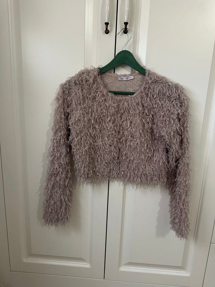 Bej renkli, uzun kollu ve yuvarlak yaka kadın kazak. Yumuşak yün kumaştan, tüylü detaylı ve vücuda oturan kesimde. Günlük kullanıma uygun.