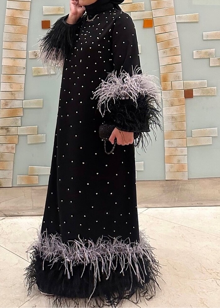 Tüylü taşlı abiye