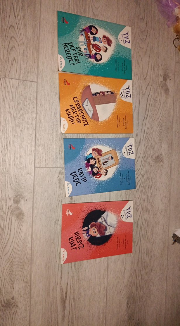 Tuz serisinden dört çocuk kitabı seti, "Hırsız Kim?" ve "Es Rengi̇z Kırmızı Kim?" gibi eğlenceli hikayeler içerir. Canlı resimler ve basit metinler bulunur.