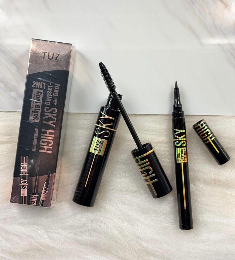 TUZ set, siyah maskara ve uyumlu eyeliner ile gözlerinizi belirginleştirir, kalıcı ve yoğun renk sağlar.