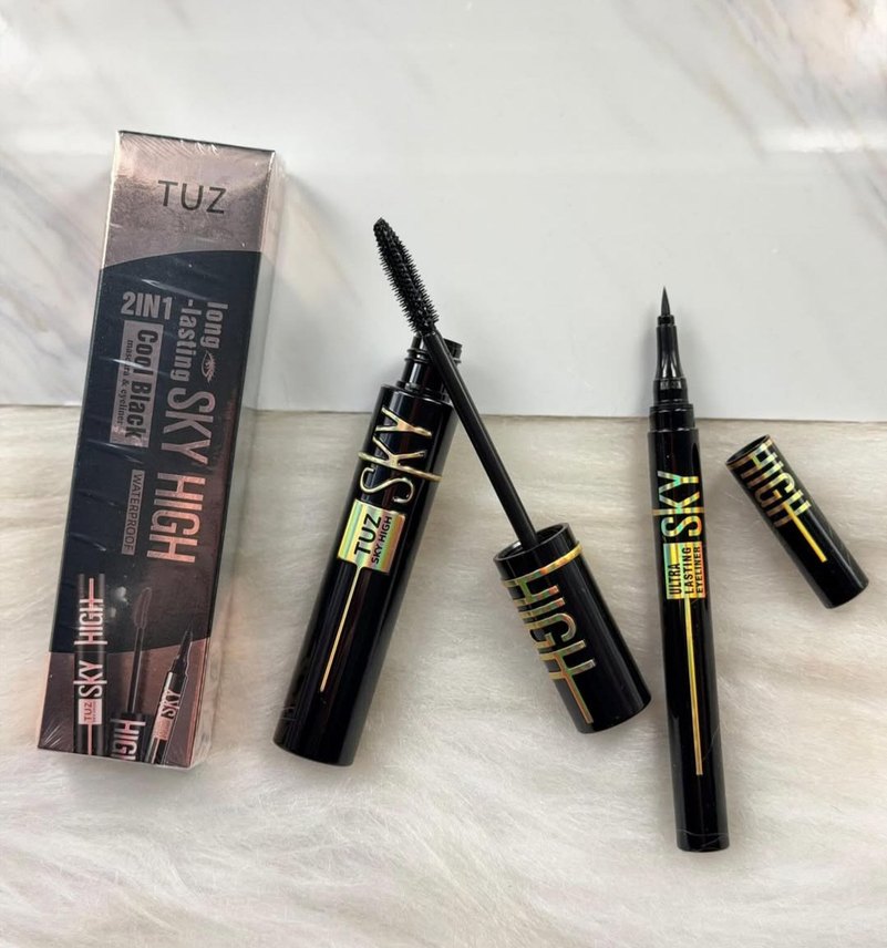 TUZ Sky High set, siyah maskara ve eyeliner içerir. Maskara uzun süre kalıcı, eyeliner ise keskin uygulama sağlar. Şık siyah ve altın detaylı ambalajda.