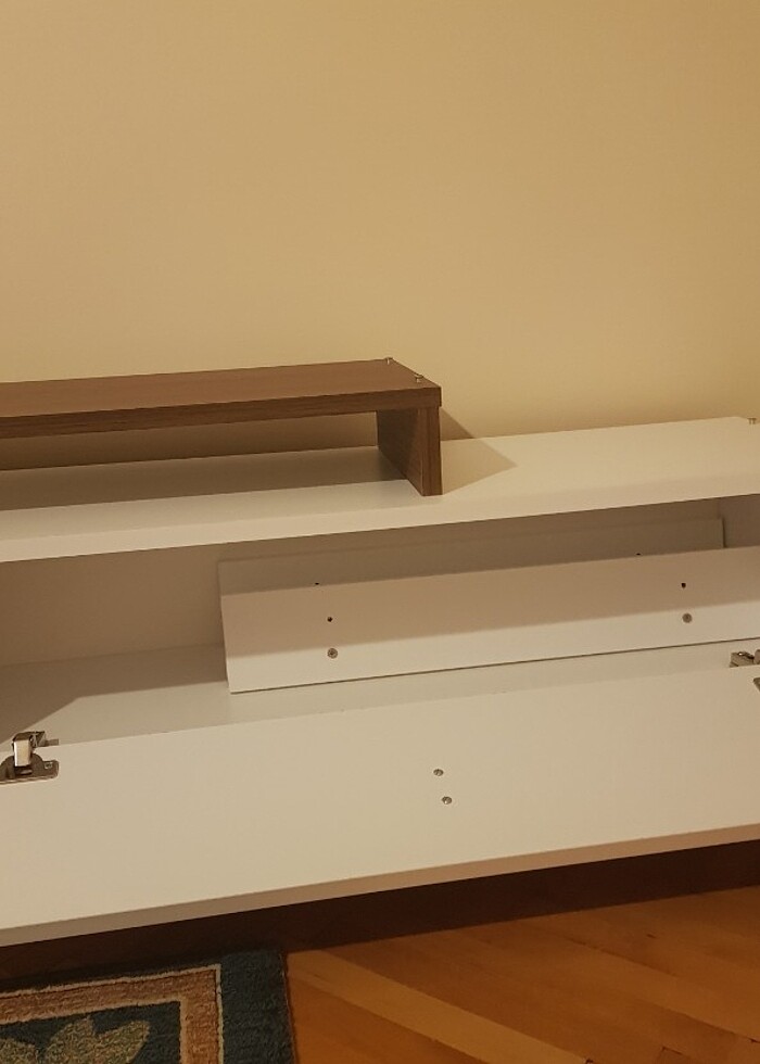 urun temizdir, evideadan alınmıştır.2 adet duvar rafi bulunmaktadir.ust kahve rengi kısım alta monte edilmemiştir. #tvunitesi #evidea