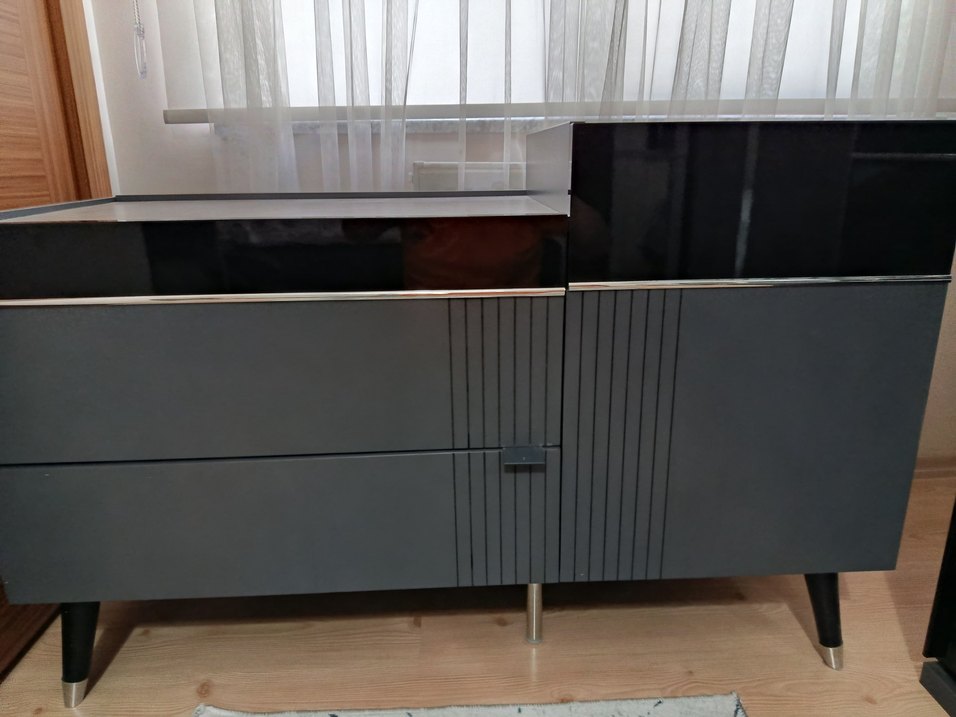 mdf yonga levha gri antrasit renk 2 cekmeceli kapakli kapak kismi 2 rafli tv unitesi konsol .hic kullanilmadi.hicbir. deforme yok.yerim olmadigi icin satiyorum.İstanbul elden teslim