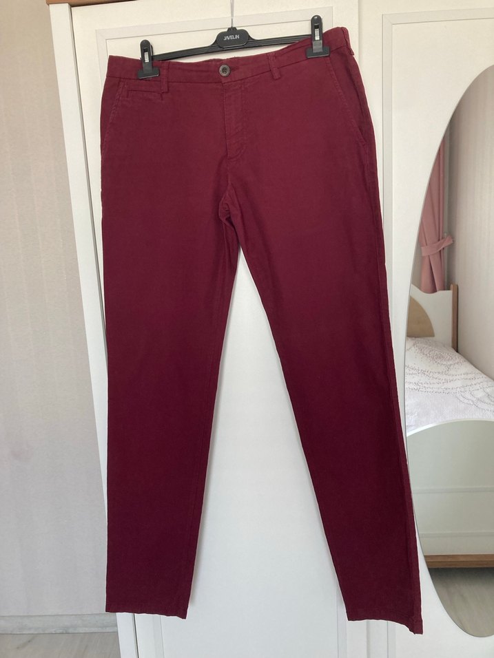 Bordo renk, regular fit, normal boy erkek pantolon. Sentetik kumaştan, rahat ve şık, günlük ve ofis kullanımı için uygun.