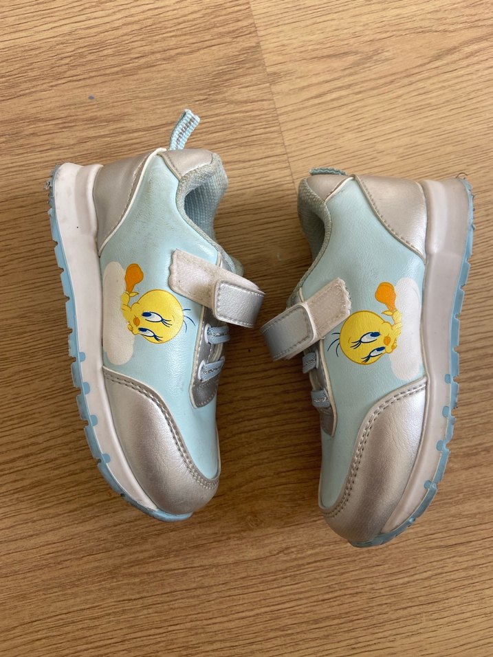 tweety baskılı 23 numara temiz kız çocuk ayakkabı. 1-2 kere kullanılmıştır ayağa dar gelidği için bir daha kullanılmıştır