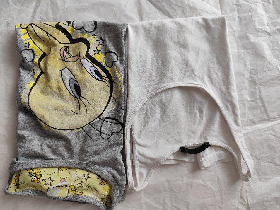 Gri baskılı Pijama üstü. Tweety. Boy =66 2 Koltuk arası=48cm. Düz beyaz, Askılı tisdort. Boy = 60. 2 kolArasi =39 cm Kaliteli kumaş ve 2 si temiz sıkıntısız. 2 li fiyat. 50