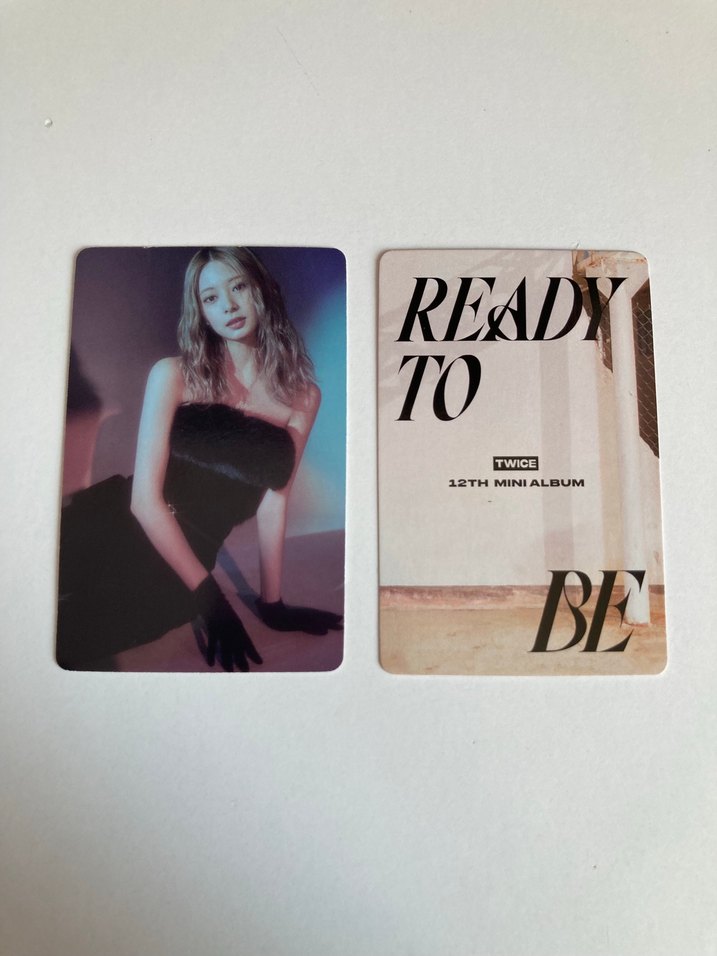 TWICE'un 12. mini albümü READY TO BE'den, bir üyenin portresi ve albüm tasarımı içeren lomocard