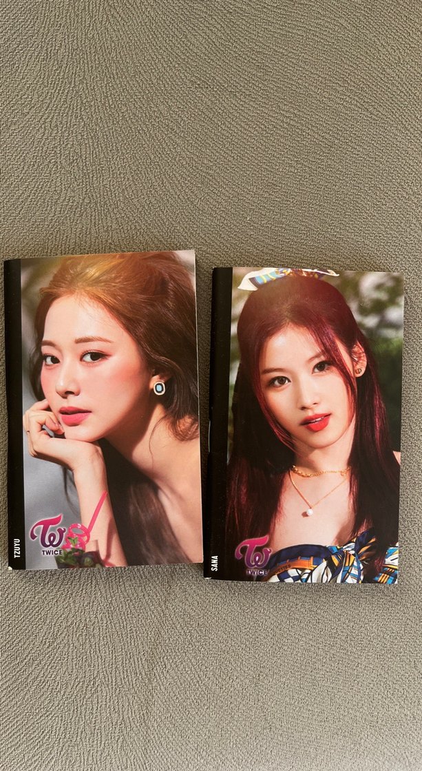 TWICE grubunun üyelerinin yakın çekim not defter kartları. Her kart üyenin net yüz detayları ve şık görünümüyle dikkat çekiyor. Koleksiyon için uygundur.