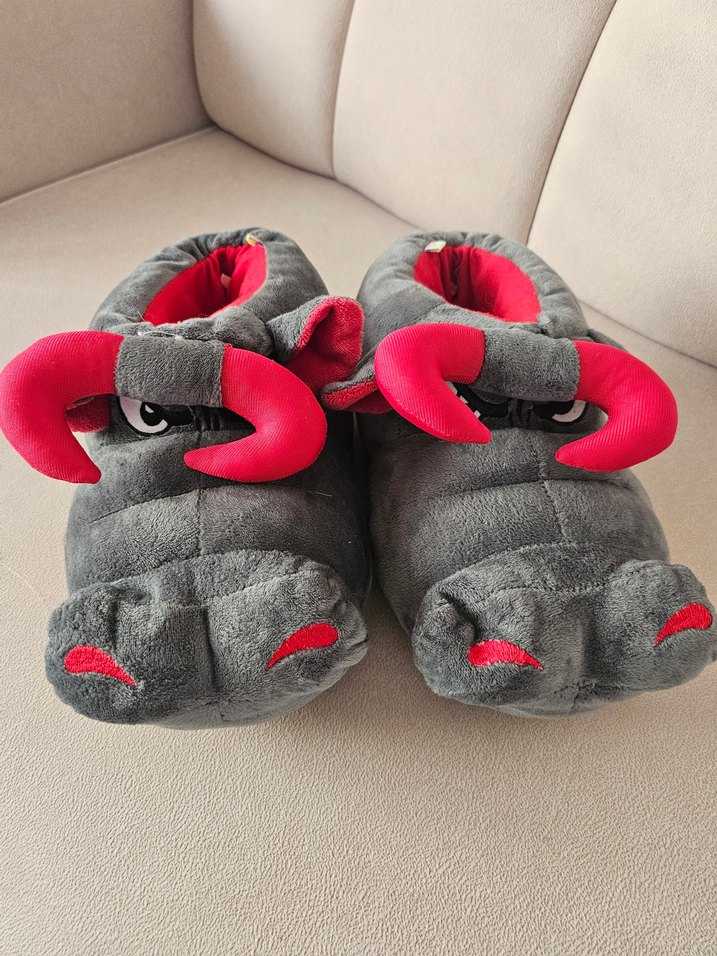 Gri, yumuşak ve sıcak kumaştan erkek çocuk terlikleri, pop kültür nakışlı ve kırmızı detaylıdır. 40 43 arası
