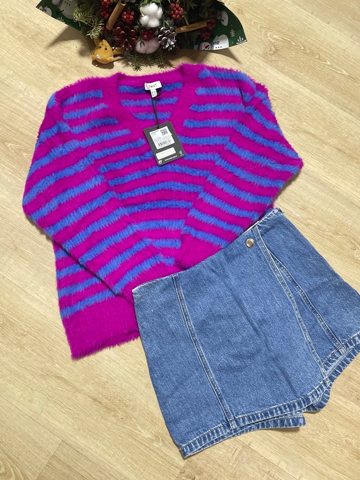 , bol kesim uzun kollu, v yaka triko kazak. Yumuşak denim kumaştan üretilmiştir. Rahat sokak tarzı için uygundur. Yumuş yumuş bir kazak Twist kalitesi