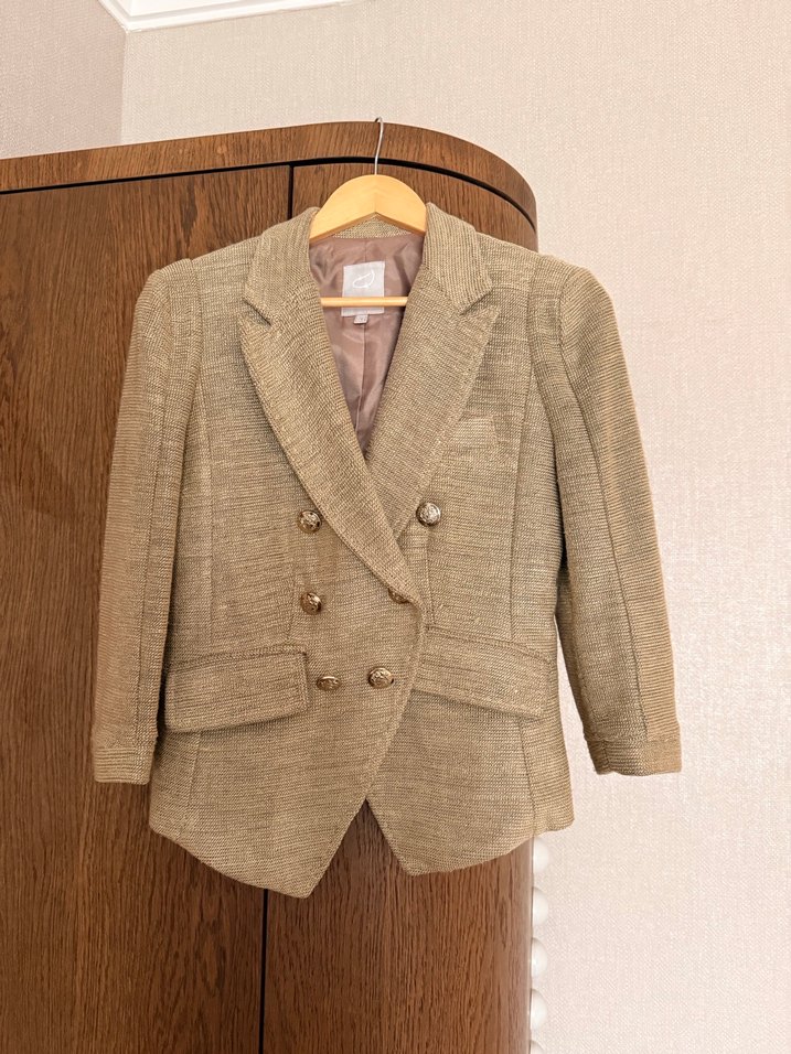 Twist Bej Düğmeli Kadın Keten Blazer Ceket