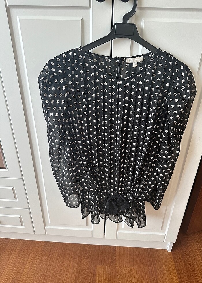 Ürün fotografta görüldügü gibidir 1 kere giyildi aşağı doğru bel kısmı lastikli omuzlari sünger vatkali içinde kendiliğinden askılı bluz astarı var