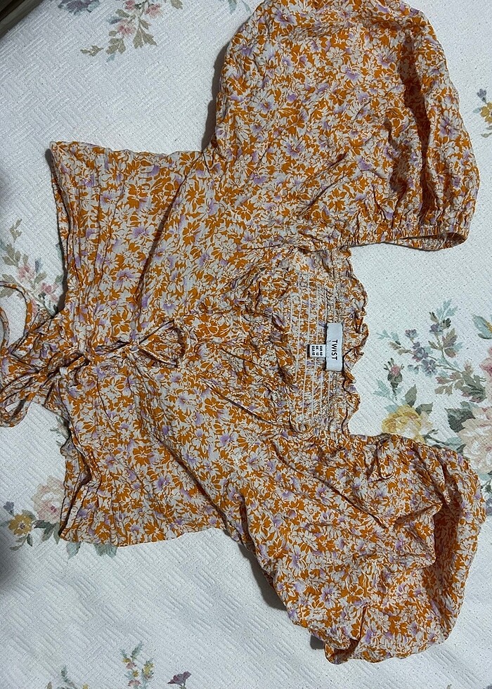 Bir defa giyildi turuncu tatlı bir bluz M l uyumlu iple sıkılabilir olduğu için s de olabilir