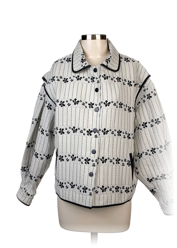 desenli çıt çıt kapama cepli Malzemeler Polyester, Pamuk Ölçüler Göğüs: 66cm, Uzunluk: 61cm Aynı gün kargoya verilir. Kontrolleri Gardrops tarafından yapılmıştır.