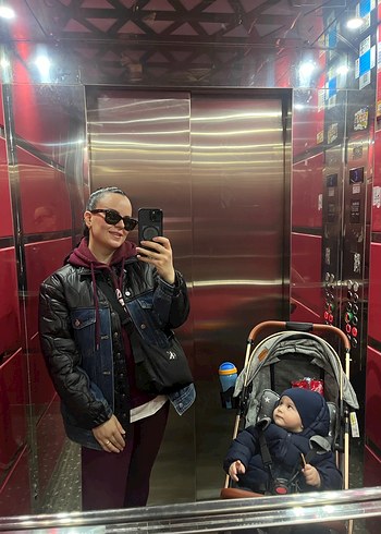 Denim ve kapitone kumaş karışımı, düğmeli ön ve kesilmiş yaka detaylı Twist mont. Salaş kesim ve uzun kollu, günlük sokak stili için uygun. Bir iki kez giyildi tertemiz